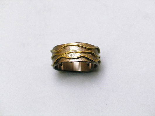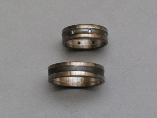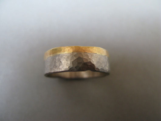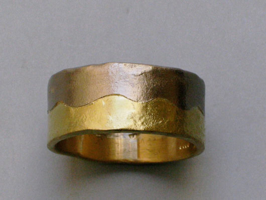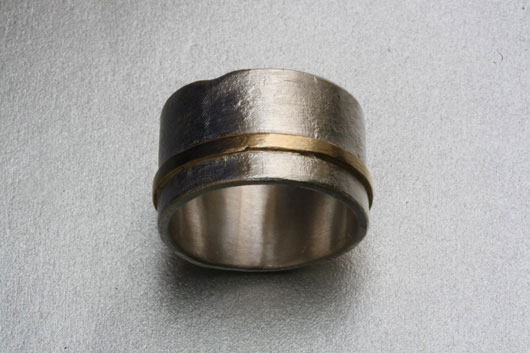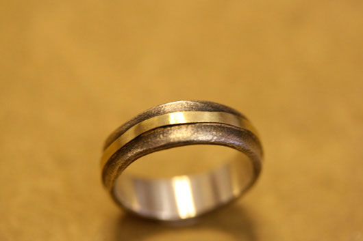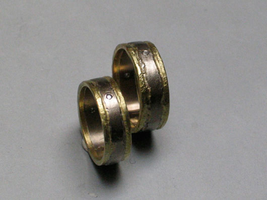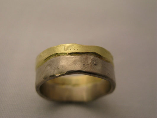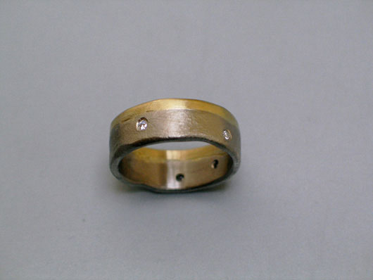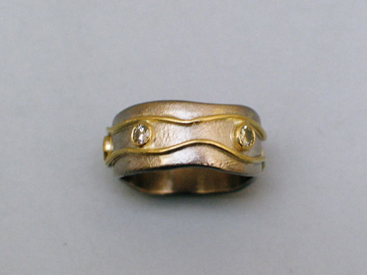 Rd3 18ct white and 18ct yellow fused and textured set with diamonds